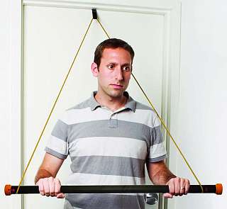 Shown and bar resting on stomach, rotate bar over your head and back. Side to Side: Lying on your back, grasp bar with both hands, shoulder width apart. the Rubber Cord Set with Door Strap. For each exercise, posi-tion the door strap at appropriate ... Fetch Document